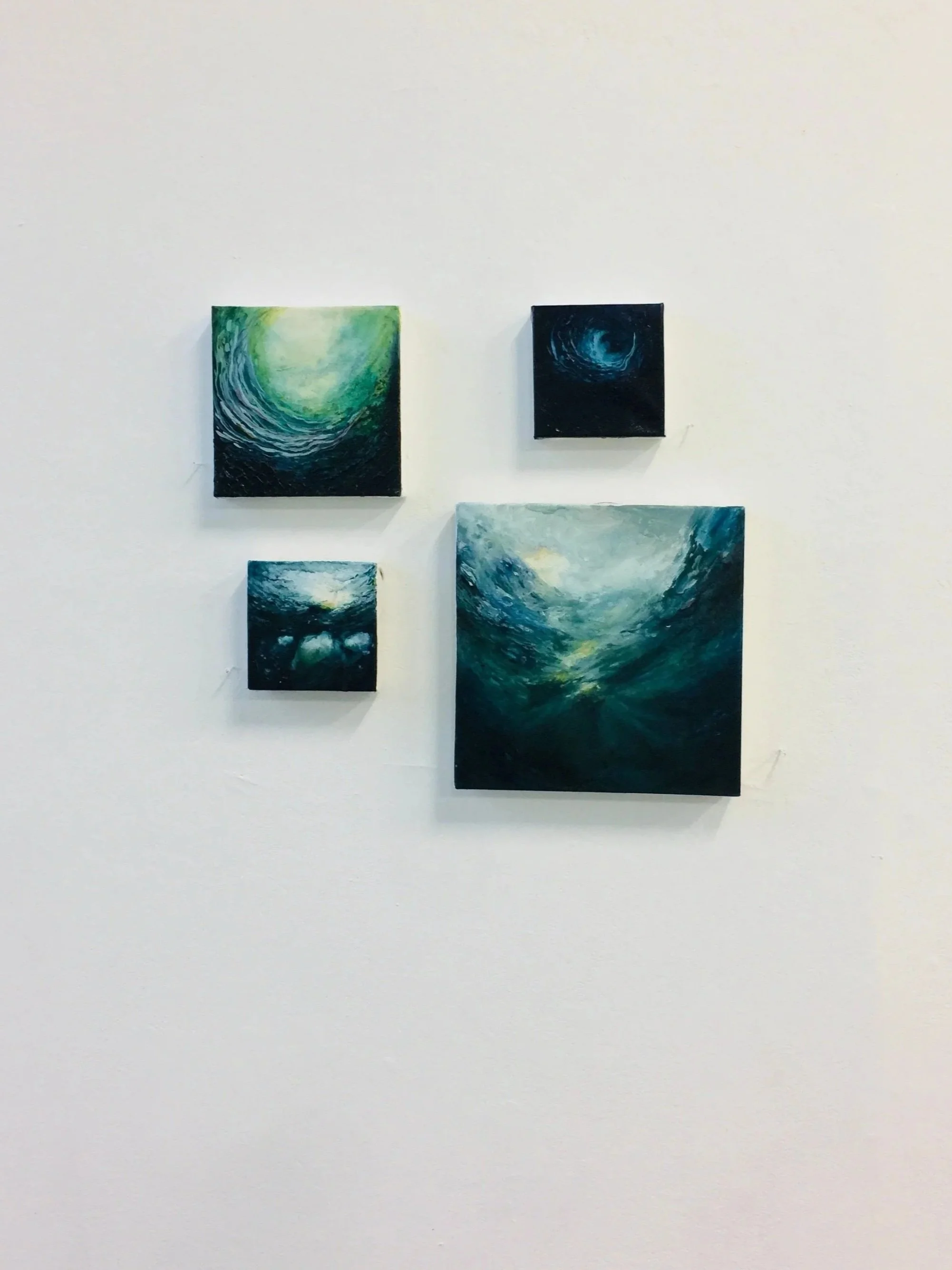 These paintings portray an experience of unpredictable everyday life. Uncontained bodies of water represent a personal struggle with ambiguity, uncertainty and fleeting time, always fighting the impermanence of existence. My work pushes the boundaries of the traditional landscape, immersing the viewer beneath the surface. You are not a witness to the disruption, yet a part of it.